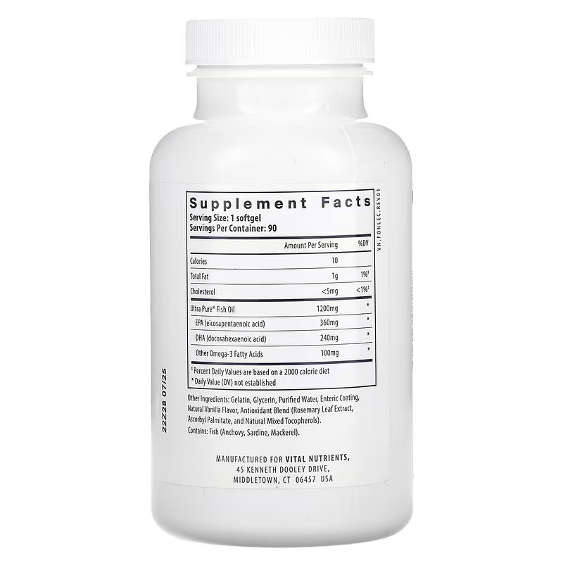 ViTAL Nutrients Ultra Pure® Fish Oil 700 Enteric Pharmaceutical grade 90 Enteric Coated Capsules