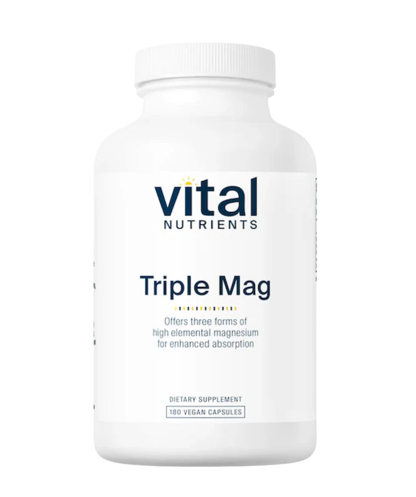 Triple Magnesium combines three unique forms of Magnesium - Oxide, Malate and Glycinate. Magnesium activates enzymes that are essential in many functions of the body, and promotes the normal metabolism of fat, carbohydrates and amino acids.* It supports healthy teeth and maintains bone density.* Magnesium helps maintain blood pressure levels that are already in the normal range as well as helping to maintain normal mood and emotional well-being premenstrually, and during the menstrual cycle.* Triple Mag contains magnesium oxide, a small and compact molecule that delivers one of the highest percentages of elemental magnesium per dose, making it an effective choice for someone who wants to take as few capsules as possible.* Due to its osmotic effect in the colon, it also helps support regular and comfortable elimination.*